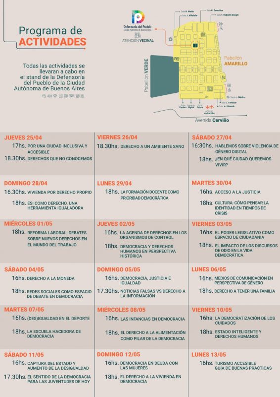 Por octavo año consecutivo, tendrá su espacio en el Pabellón Amarillo de La Rural donde funcionará un puesto permanente de atención vecinal y se desarrollarán conversatorios, charlas, talleres y juegos interactivos.